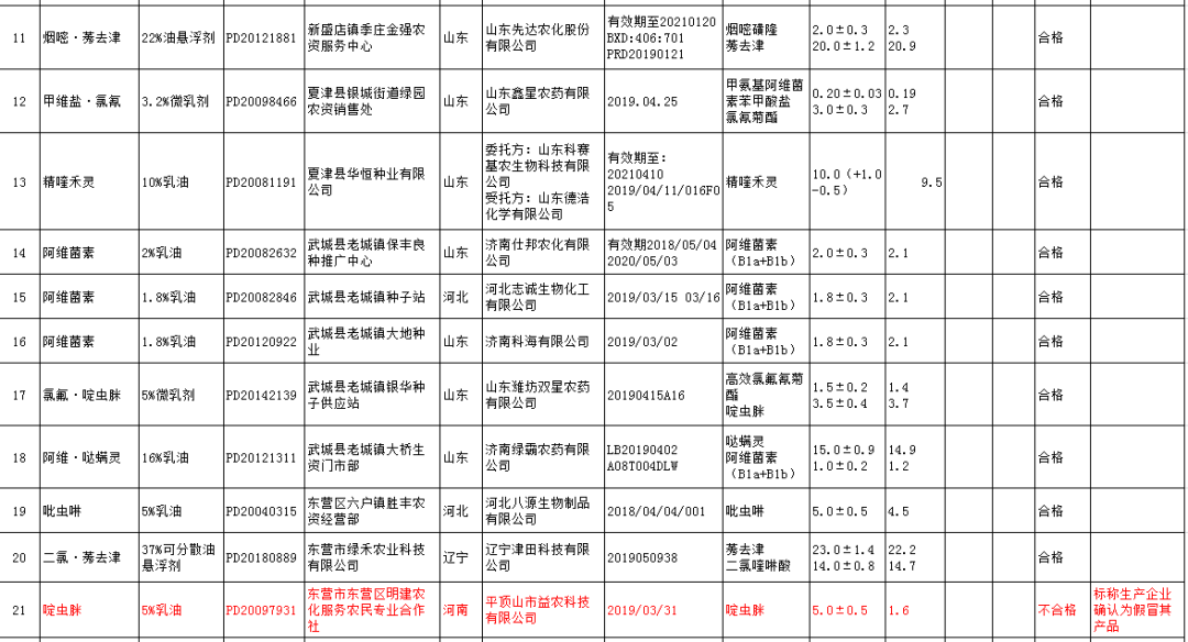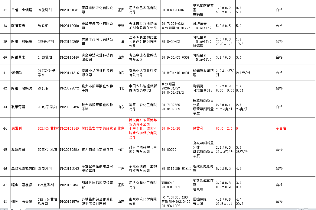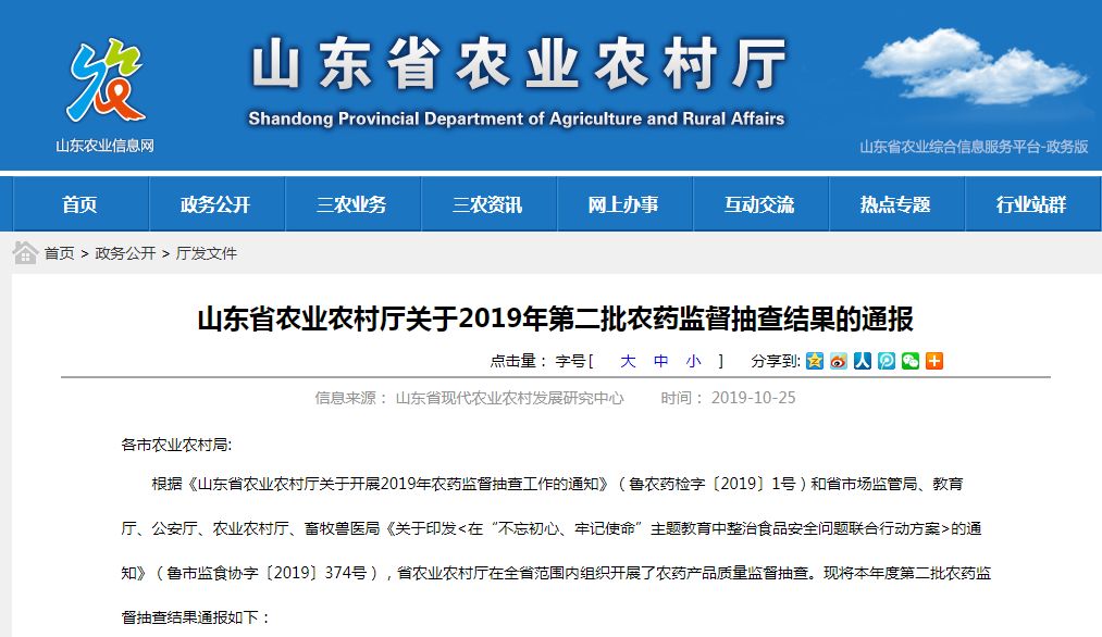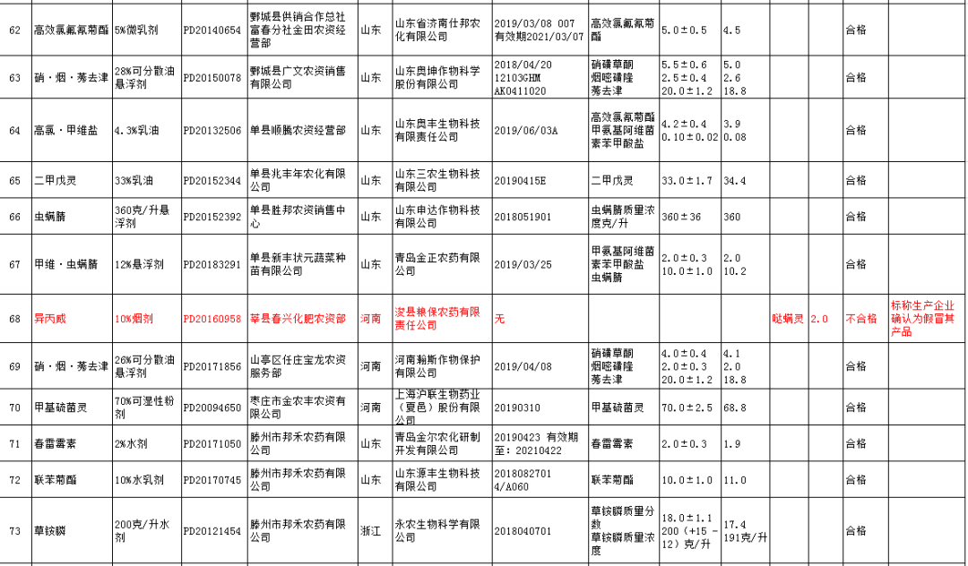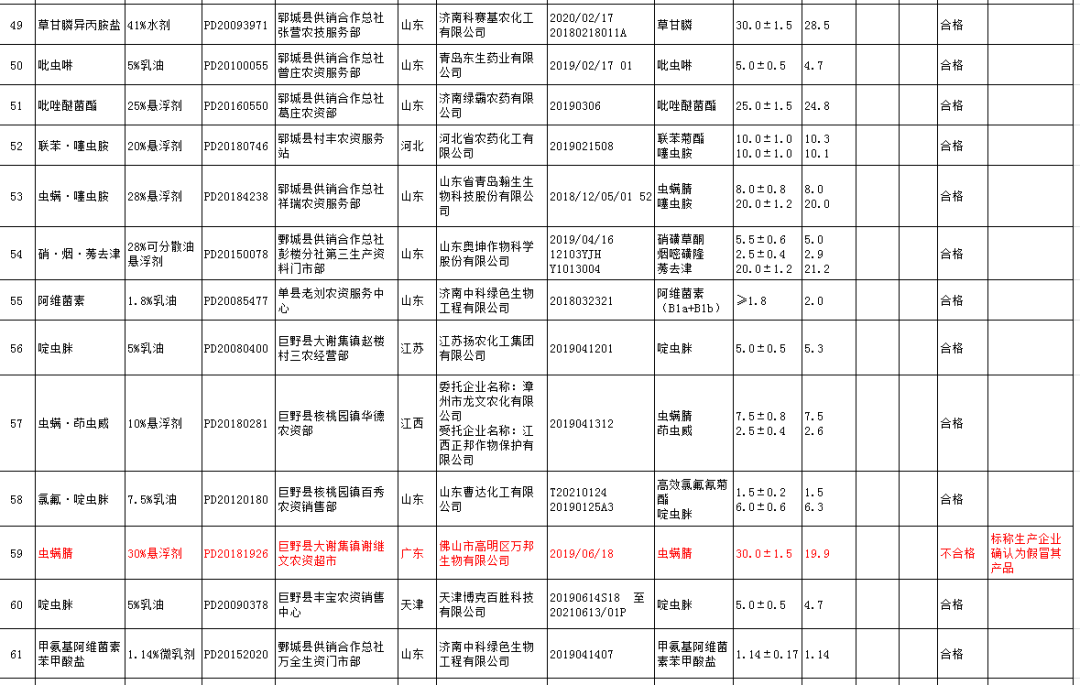 本次通报共有106个批次的农药产品,涉及安徽、江苏、河北、河南、湖北、江西、陕西、吉林、山东等19个省(市)的89家农药生产企业和山东省12市72家农药经营单位。监督抽查范围包括农药市场和生产企业,市场抽查按照“双随机一公开”原则确定被抽查农药经营单位和农药品种,企业抽查在“双随机一公开”原则的基础上,结合近年来部省监督抽查结果,突出涉嫌存在问题的农药生产企业和农药品种。