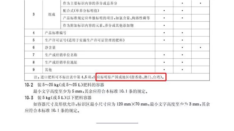 除产地标识之外,《中华人民共和国国家标准肥料标识内容和要求》中要求进口肥料在外包装上需要标注养分、规格和生产或经销单位的地址,但这款肥料都没有明确标注。